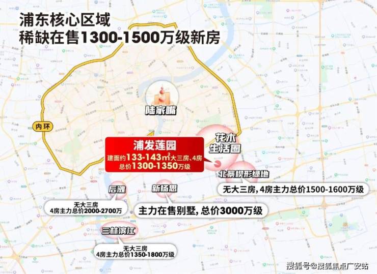 地段上:内环旁、三轨交,6站陆家嘴;左拥花木成熟配套,右接北蔡发展红利,牢牢占据浦东核心生活圈。