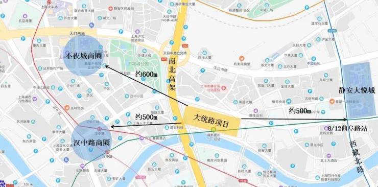 商业配套:周边500米左右有静安大悦城、万象天地、汉中路商圈,约600米可至不夜城商圈。另距离人民广场商圈约1公里,距离南京路步行街约1.8公里。