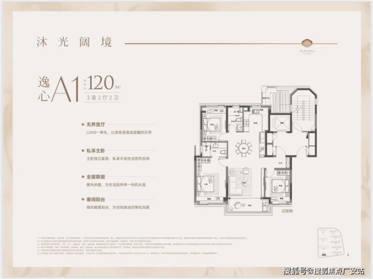 户型特点:4开间朝南,LDK一体化设计,南北通透。客厅面宽达4.3米,外接4.8米长阳台,采光通风俱佳。主卧带270°转角飘窗,主卫也有飘窗赠送。全屋飘窗设计,独立电梯厅,私密性与尊享感强。