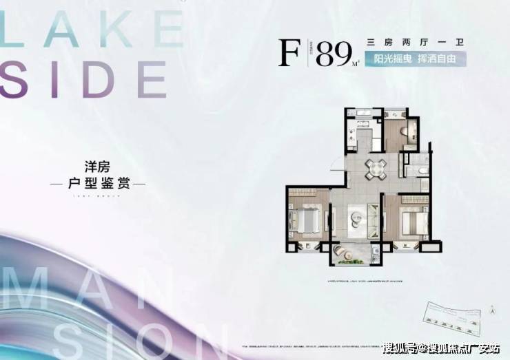 洋房有两个面积段:约89㎡三房一卫和约94㎡三房二卫。