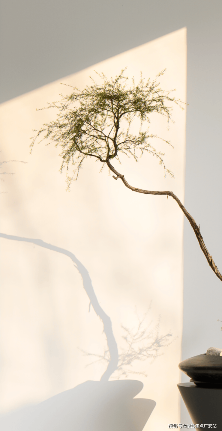 器物、枝叶缔造了虚实相生的意境,在墙面上留下了唯美的“倩影”,进而丰富了空间内在。