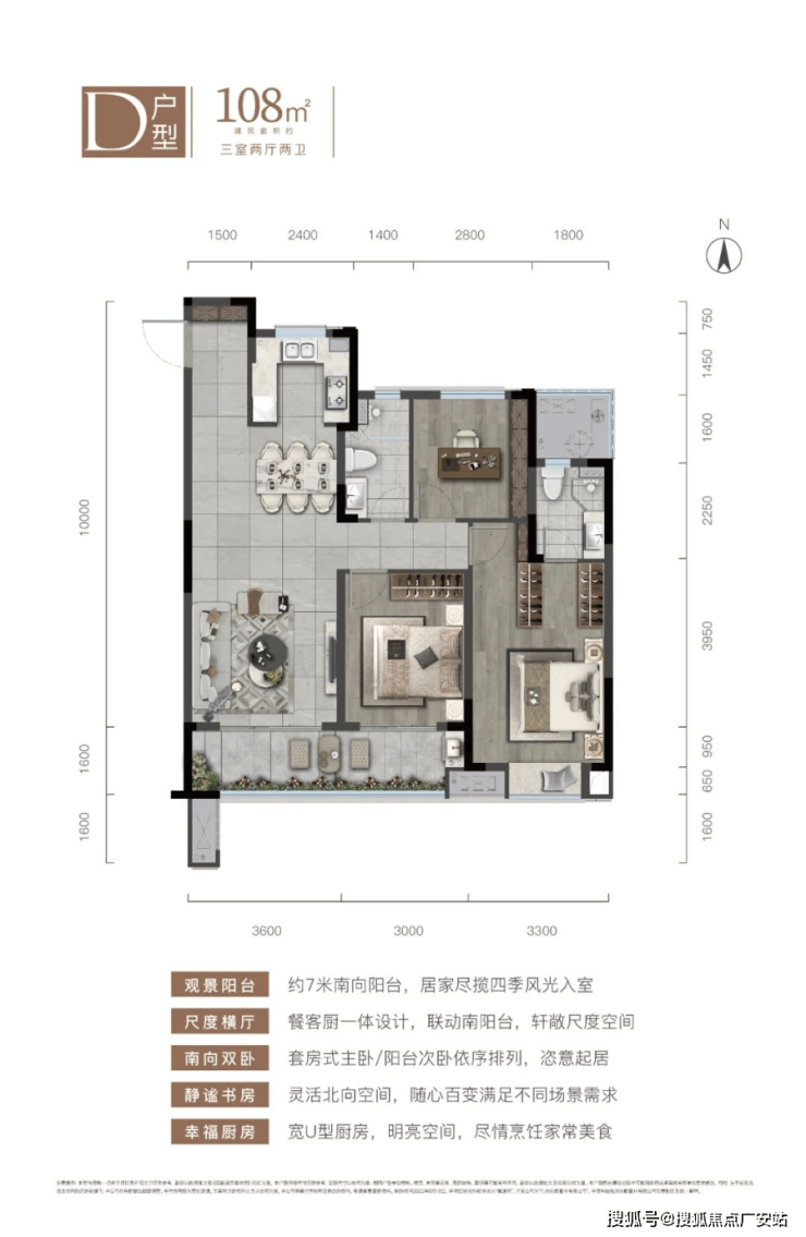 建面约89m²全能大三房,主次卧空间充沛,主卧套房式设计、三开间朝南向、双卫设计,空间多得;建筑面积约105㎡大三房全明户型,双卧朝南、拥约7米南向景观阳台、餐客一体横向约6米宽幅采光。更高的得房率,安放生活多重逸趣。