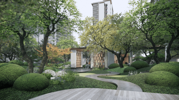 而这次的景观设计灵感,据悉是来源于很受中产喜欢的隐奢酒店。用隐奢的风格打造整个园林氛围。