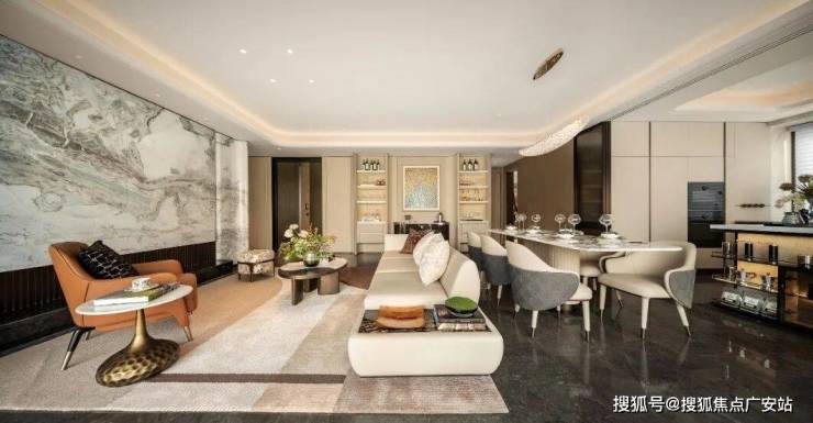 金茂·璞元以极高的空间设计造诣,不吝成本将品质做到极致,室内大量运用奢石,搭配木饰面与皮革材质,让奢华与舒适完美融合。