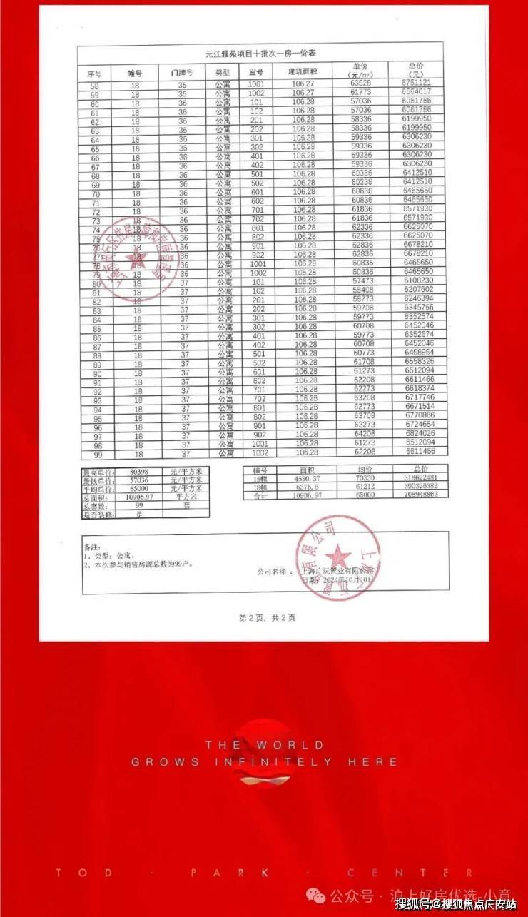 最新一房一价表: