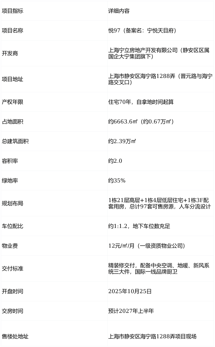 新房|静安内环芯·苏河湾畔悦97,建面88-100㎡2-3房,800万起步抢占内环改善风口核心参数速览:项目名称为悦97,雄踞上海静安内环核心板块,紧邻苏河湾滨水生态带,作为内环内稀缺的刚需改善型新房项目