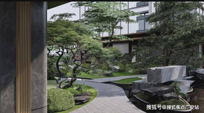 配备约100米城市级门庭、特选造型松和水景,以及三重归家礼序空间(鎏光华堂、拾光艺廊、浮光水庭)。