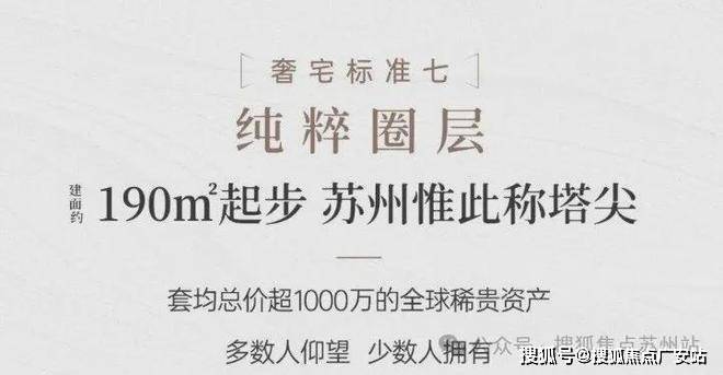 苏州唯一190㎡ 以上高端大平层,圈层纯粹项目面积段190㎡ 起步,面积段190-380㎡ ,面向苏州高净值人群的地标资产,真正的狮山路极核,运河头排大宅!