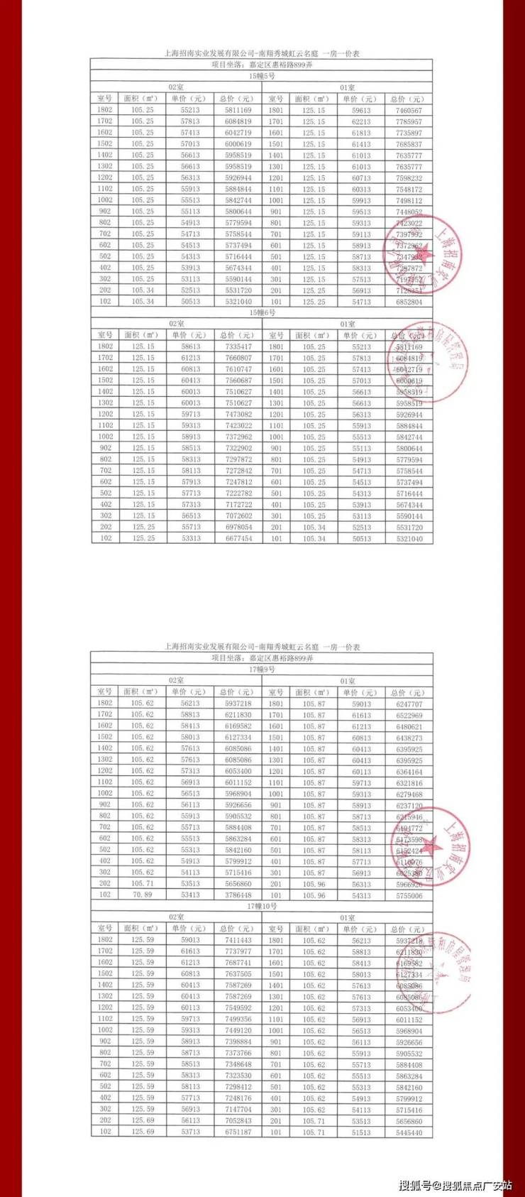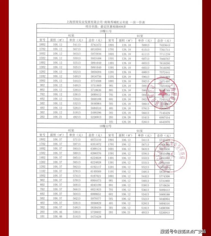 项目一房一价表