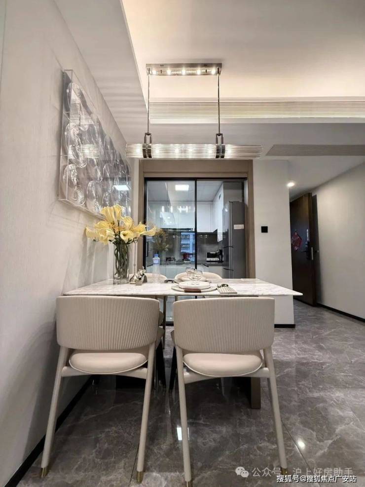 厨房+餐厅+客厅+大面积观景阳台一体化,提升整个空间利用率。