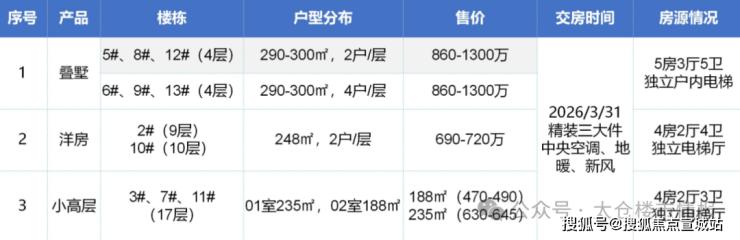 【面积段】: 188-235-248㎡/300-400㎡平叠加
