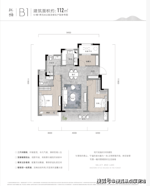 优势:双阳台设计,完美匹配湖山美景。客餐厨动线合理,观景飘窗连通了室内室外两重空间。南北通透、分区合理,尤其是储藏室的设计,十分贴心。99㎡的大两居,恰到好处地放大了各个功能区,整体看过去十分舒畅。