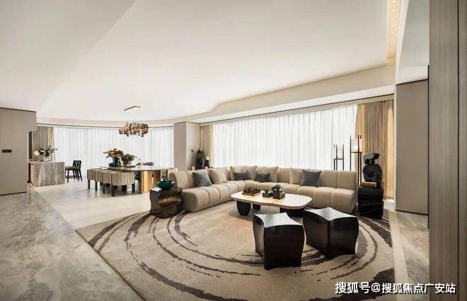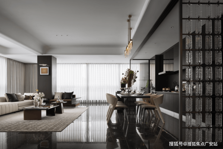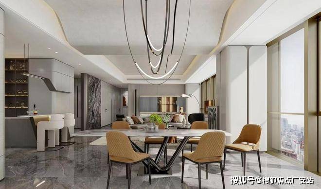 户型设计:双主卧套房、中西双厨,得房率超85%,获日本IDPA国际设计金奖,空间可灵活改造为会客厅或私宴区