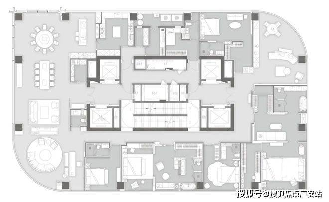 胤璞“荣耀”700方:户型由GFD广飞设计事务所创始人叶飞亲力打造。五间豪华套房与三大公共空间的布局,能够满足每一位家庭成员的个性化需求。双重入户动线与私属门厅玄关,尽显归家的尊崇礼序。