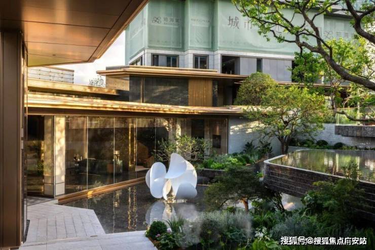 约52米洄游式大门启程,香槟金铝板、汉白玉奢石,以及368片伊朗白雪公主玉石等材质,营造归家尊崇感,穿越以光为引的奢华光厅,即见中国美院副教授施海倾心打造的《海棠知语》雕塑,立于水景中央,柔光漫过细节,步履皆是礼遇。