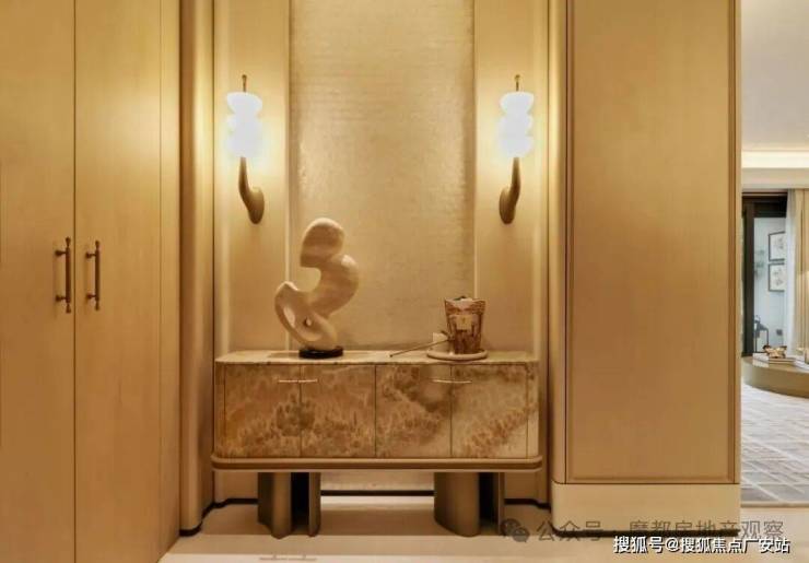从社区入口由艺术家应晶晶定制的雕塑作品,到楼栋大堂的艺术装置、电梯厅的专属导视系统,均由专业艺术团队操刀设计;
