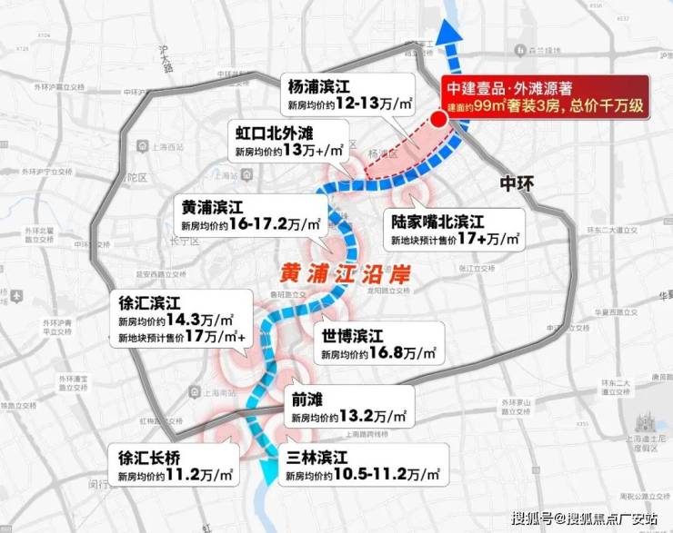 ②上海内中环普遍来到12万/㎡+,滨江地段性价比更高!