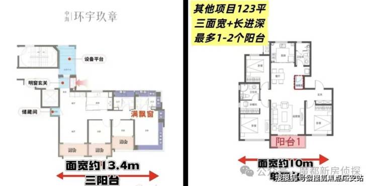 市面上大多数户型普遍三面宽+长进深。尤其是新规前的同面积段户型,整体面宽大多都在10-11m左右。