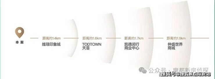 繁华芯:直线距离约3km范围内TOWN天荟、莘庄维璟印象城、万象城等一站式购物中心环伺.
