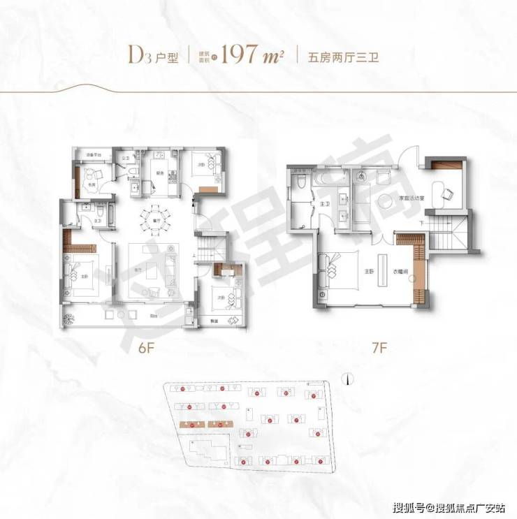 作为一个洋房&小高层住区,潮颂府规划的户型建筑面积小至105㎡、大至197㎡,既有经济实惠的紧凑三房,也有舒适气派的洋房跃层。