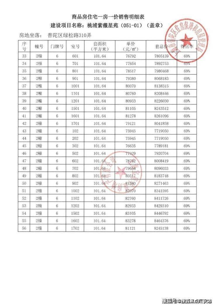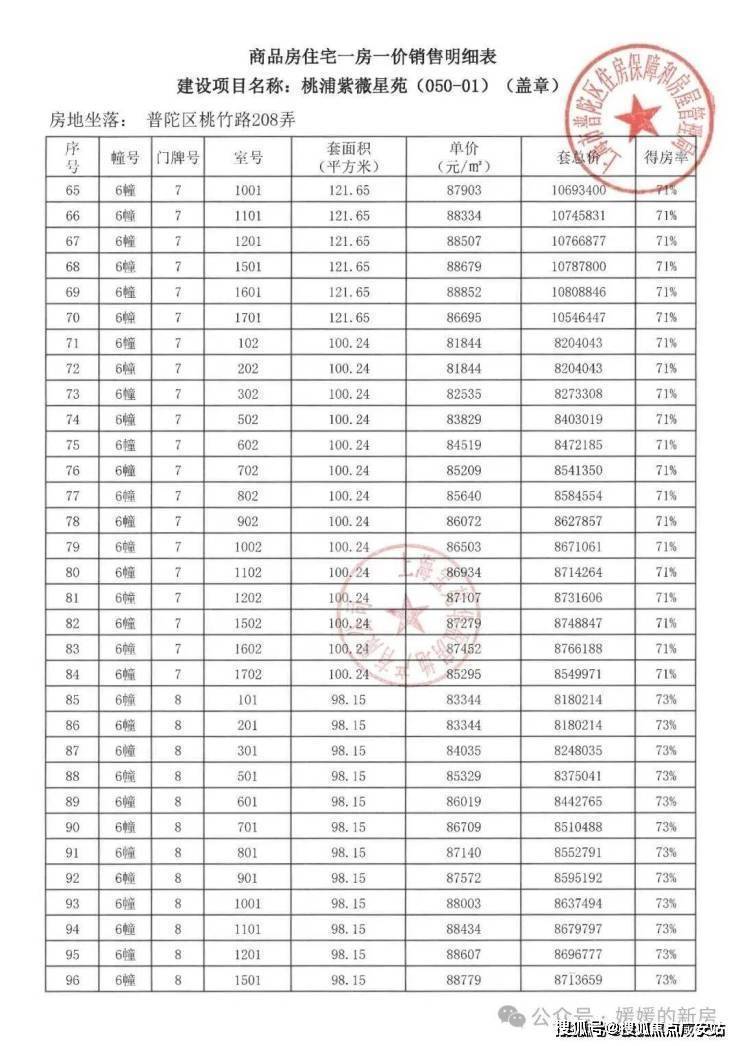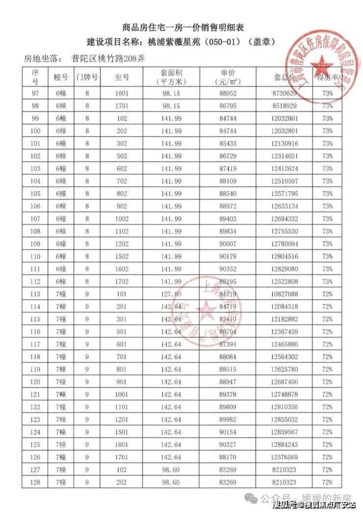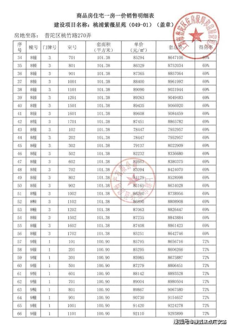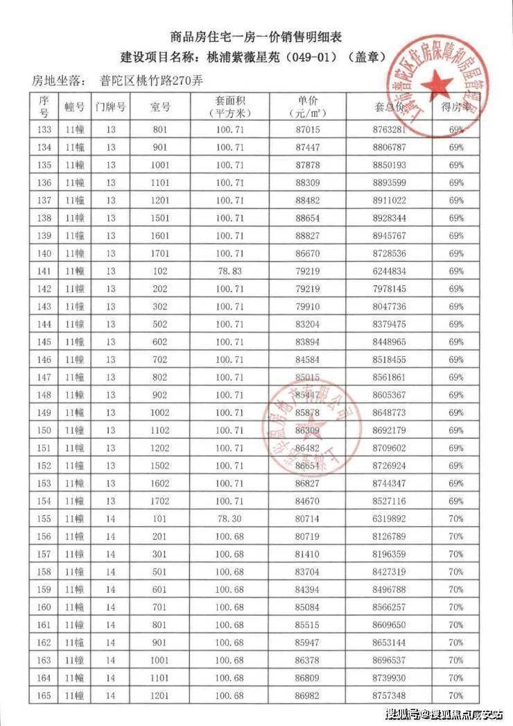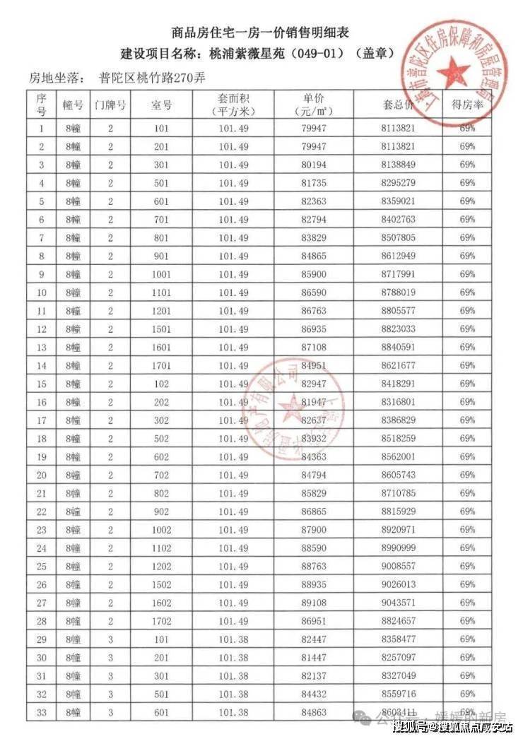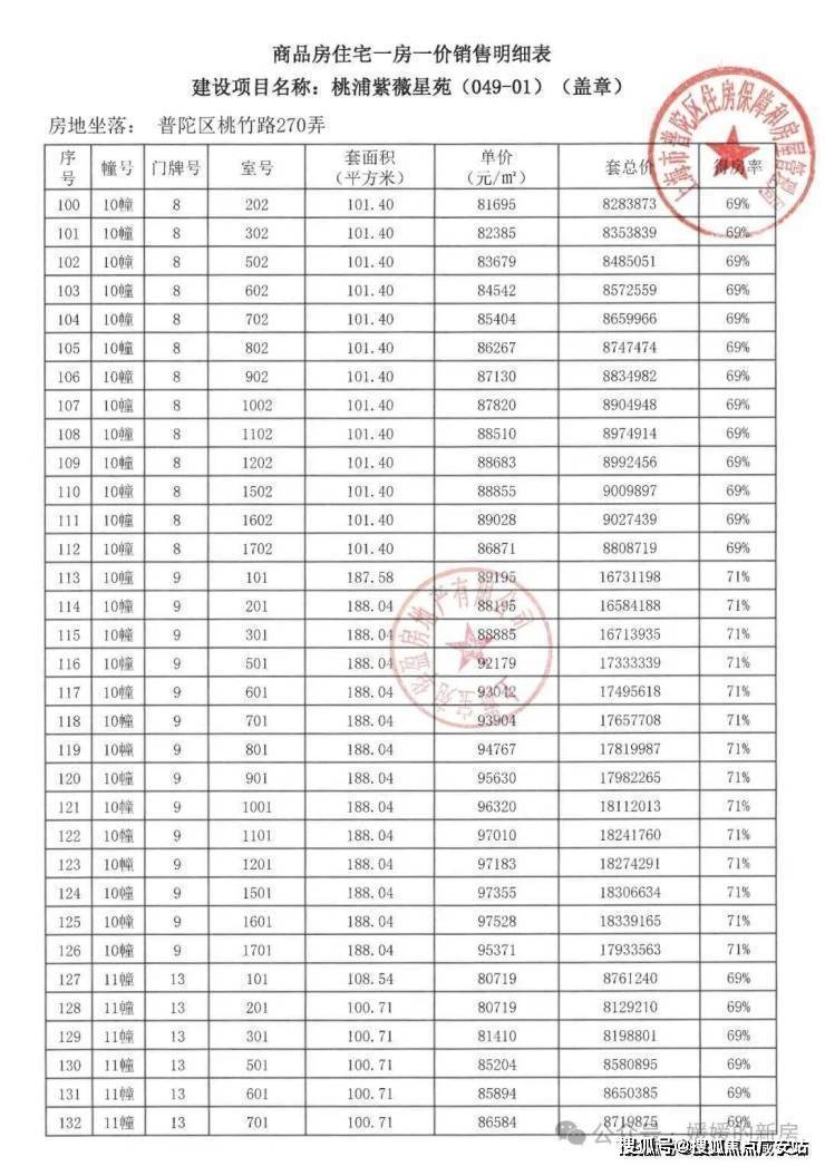 宝华紫薇之星一房一价表▼