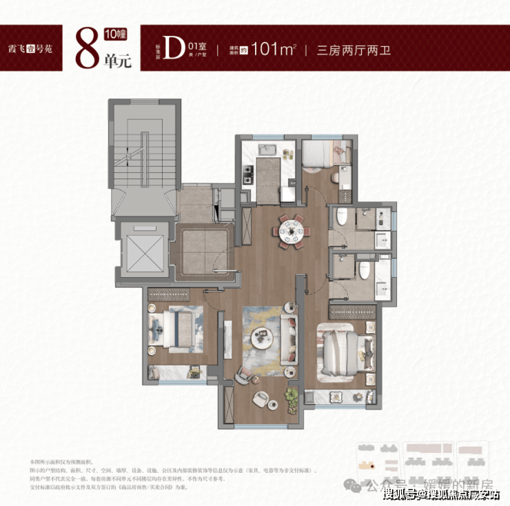 建面约101㎡3房2厅2卫: