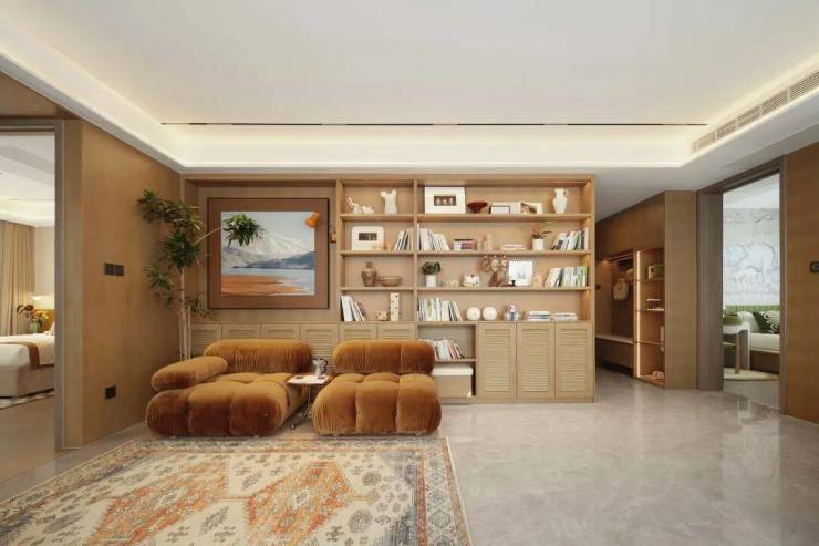 LDKB一体式打造,联动餐厨空间和休闲区,配上超大景观阳台,将室外景色引入户内,打破空间边界,引飞叶与花香穿堂留痕。阳台作为现代人向往自然的精神角落,以秘境庄园为主题进行空间设计,居家步履的尽头,邂逅勃勃生机。周末的午后,阳光打在摇椅上,品一盏清茗,暖意在花间鸟语中绽放。
