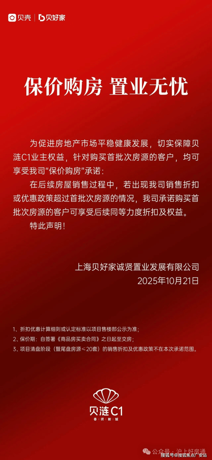 10月21日,贝壳旗下贝好家在上海的首个项目“贝涟C1售楼处电话☎:400-8657-114”发布公告,推出“保价购房”承诺:凡购买首批房源的客户,若后期出现更大力度的销售折扣或优惠,可同步享受同等级别的权益补差。