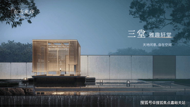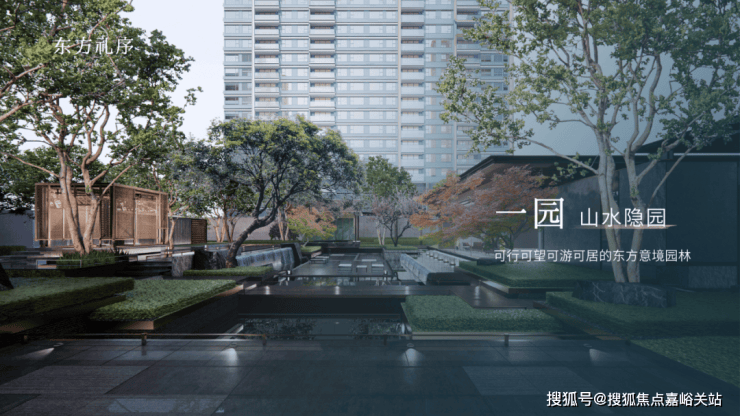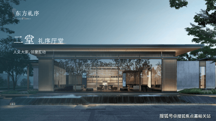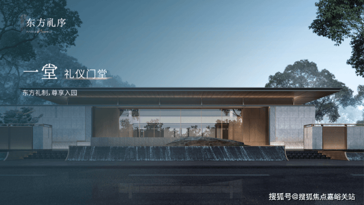 一园三堂的归家动线,象征着东方人文礼序。建筑风格造型,灵感源自金镶玉设计,提取其“曲”的形和白金配色应用到塔楼立面上,彰显项目的温和雅丽与尊贵典雅。