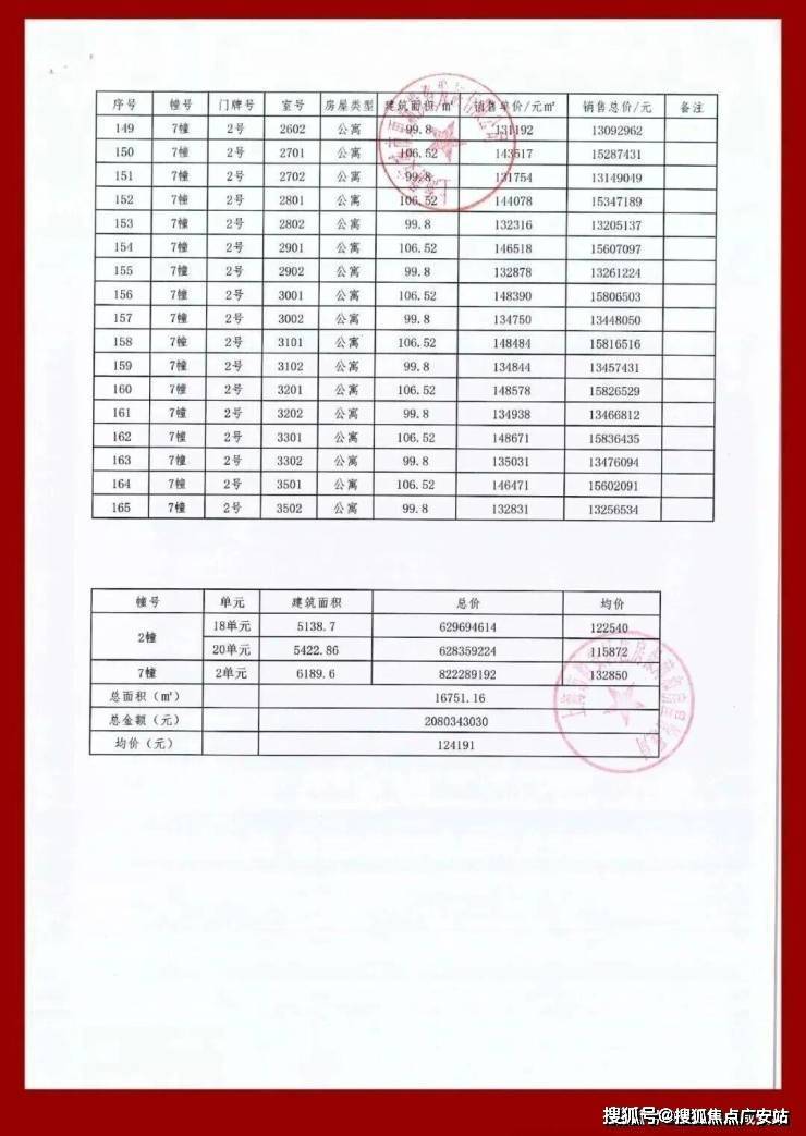均价124191元/㎡ 共165套