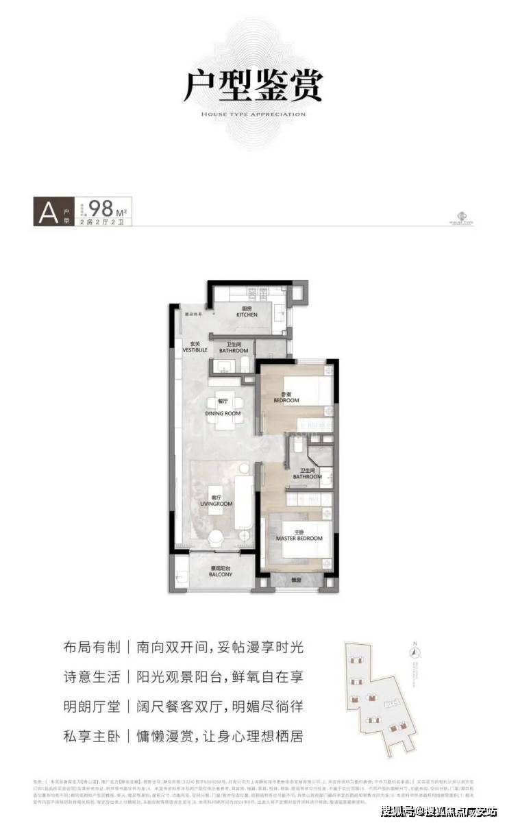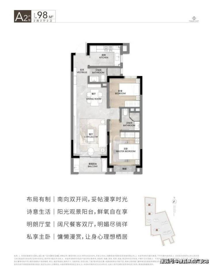 在售面积:94㎡/98㎡/100㎡2房2厅2卫