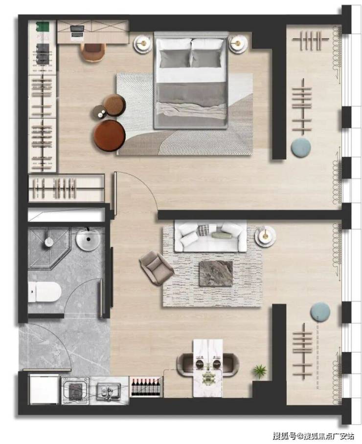 功能分区:户型设计注重功能性,虽然面积紧凑,但通过合理布局,能够满足基本的居住或办公需求。
