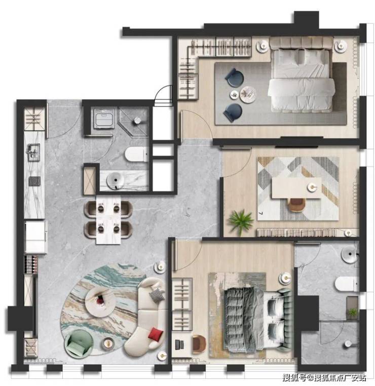 交付标准:项目主打精装交付,省去了租户/业主装修的麻烦,适合拎包入住。