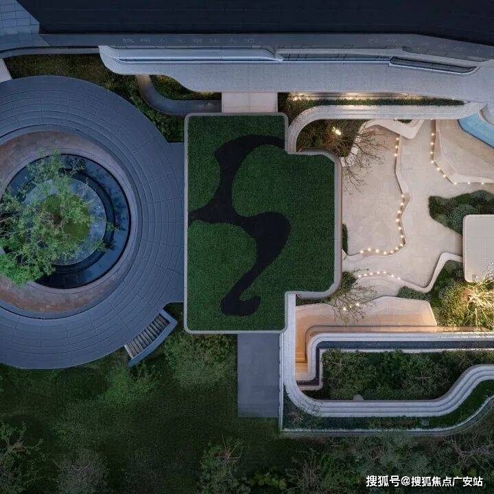 因项目整体抬高,从下沉庭院到架空层“空中花园”的落差极大,形成独特的峡谷地貌,杭序府的设计团队汲取九溪烟树为造园灵感,打造一个立体多维的城市溪谷交互园林;因项目毗邻江岸,杭序府的外立面以“站立的江潮”为灵感,