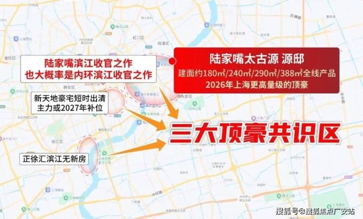 要知道,上海目前有三大顶豪共识区:新天地、徐汇滨江、陆家嘴。前两者今年预计无新房入市,也就是说,陆家嘴太古源源邸成为2026年上海量级更高、更具稀缺性的顶豪选择,是今年上海顶豪绝对“主角”。
