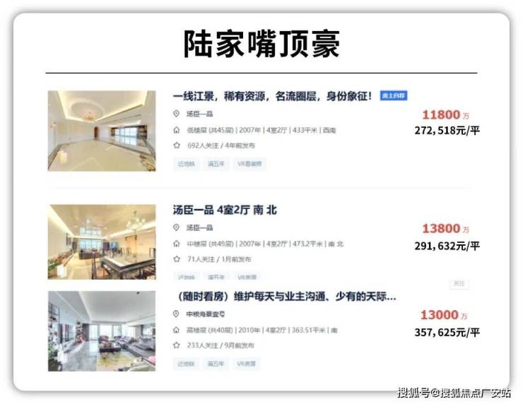 国内其他核心城市顶豪中,深圳湾一号前排无遮挡海景二手普遍30万+/㎡,恒裕滨城二期一线海景30万+/㎡,中信信悦湾顶复38万/㎡,广州侨鑫富悦台28万+/㎡;