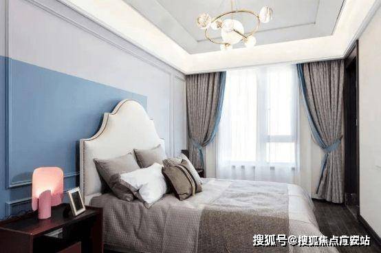 次卧是给孩子打造的儿童房。蓝白色背景墙,欢快活泼,给孩子提供了一个良好成长的环境。温馨舒适的床铺,为小主人的休憩提供了保障。
