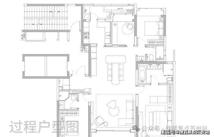 主卧大套房设计带超大主卫和衣帽间,面积约50㎡,尺度感与市面上近300㎡的顶豪拉平。