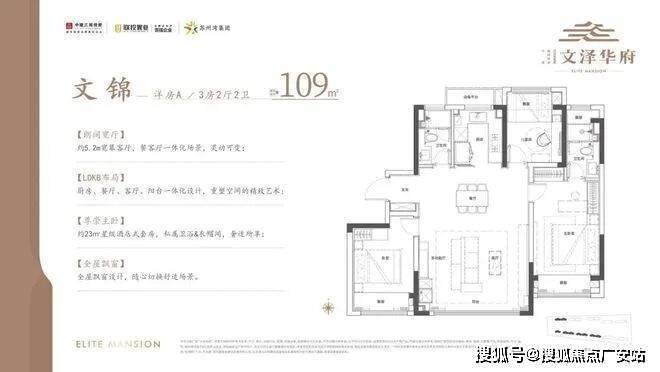 建面约109㎡洋房,约5.2米宽幕客厅,全屋飘窗,餐客一体化,居家待客皆从容;