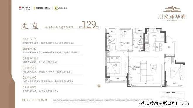 文•玺洋房B丨建面约129㎡/3+1房2厅2卫