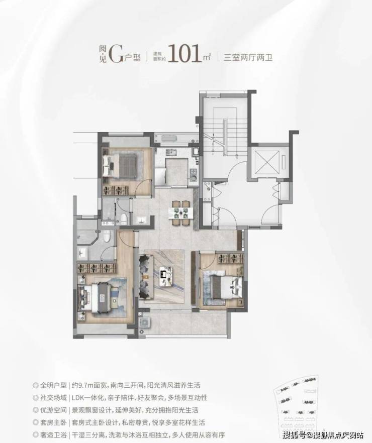 高层建面约101㎡3房2厅2卫