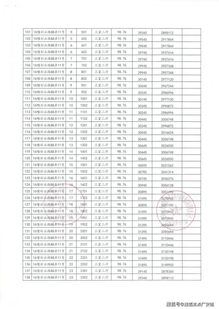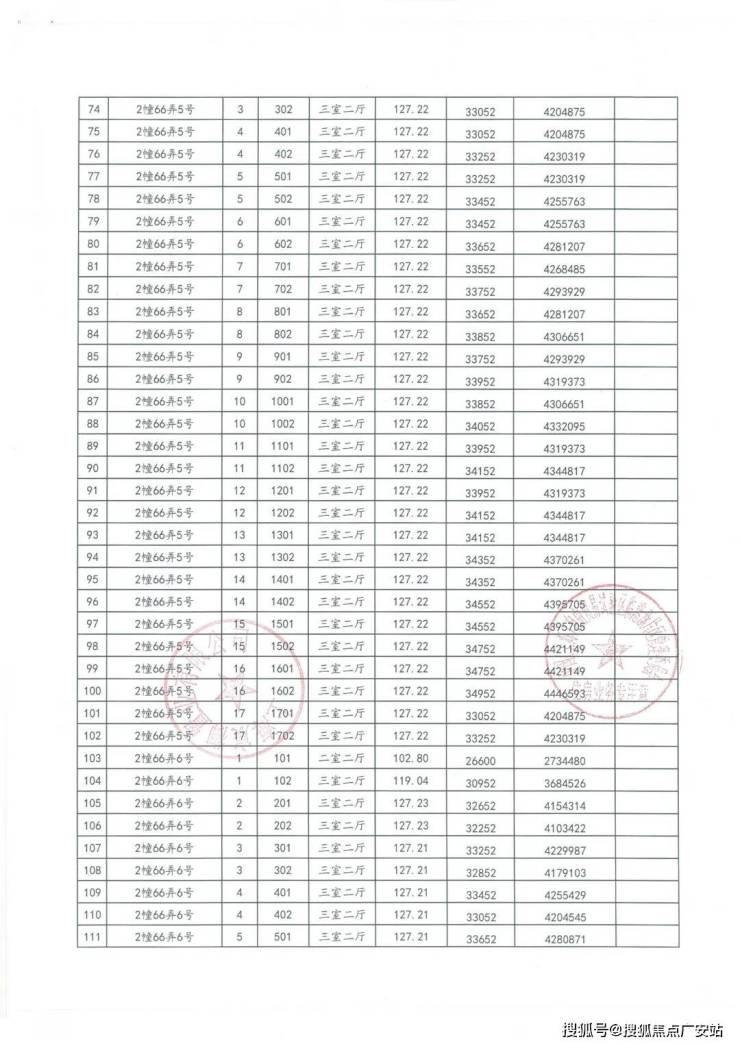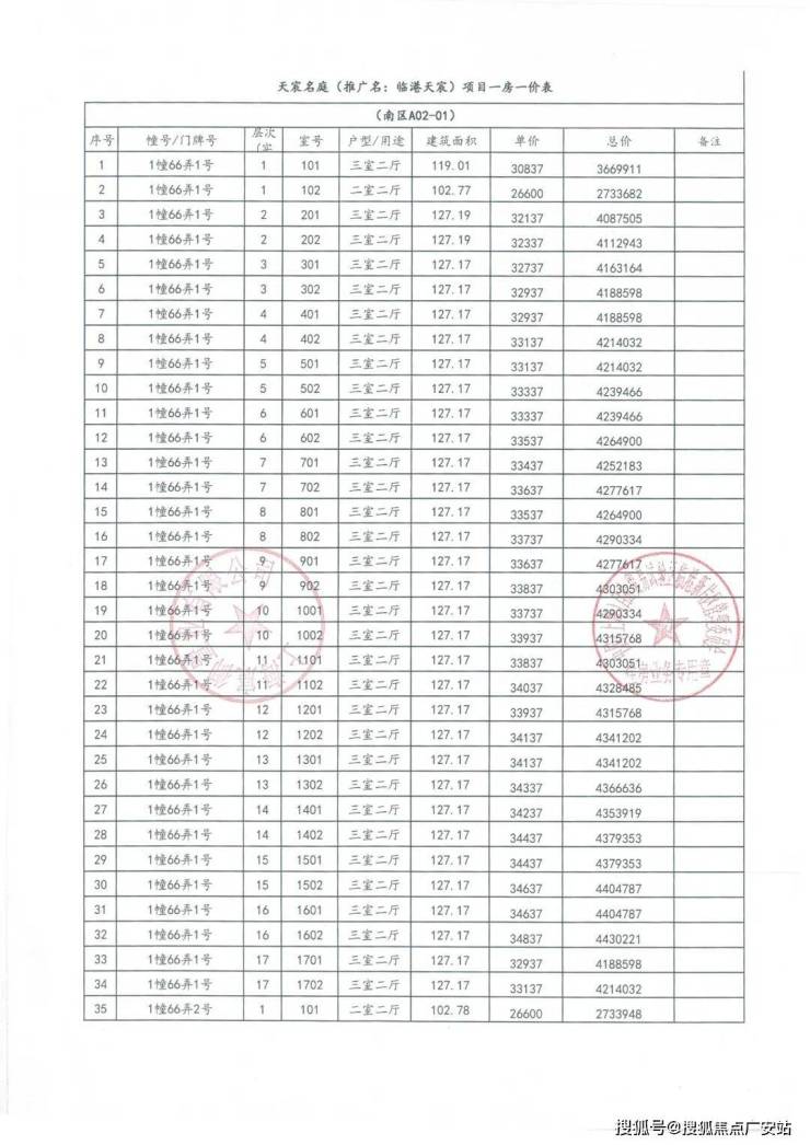 一房一价表