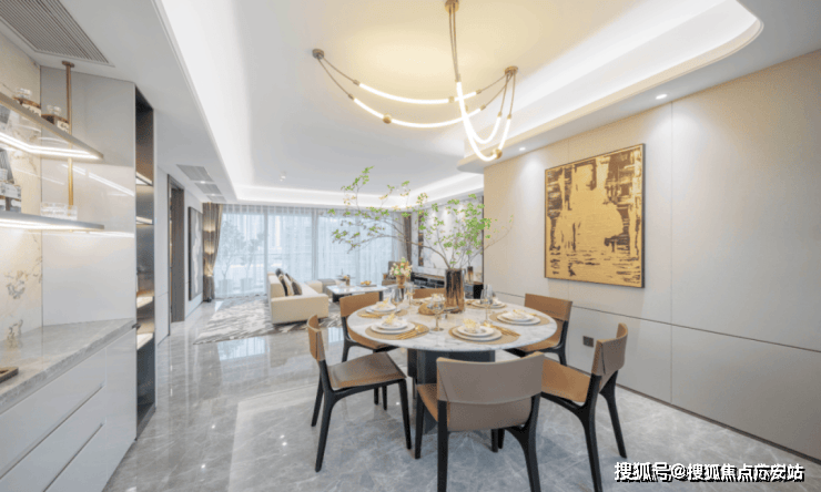三大件「中央空调、地暖、新风」,大规格岩板背景墙。厨房方面四件套:博世「油烟机、燃气灶」、方太「洗碗机、蒸烤一体机」,以及霍尼韦尔净水器、凉霸、台面不锈钢置物架、可移动插座,小细节考虑周全。