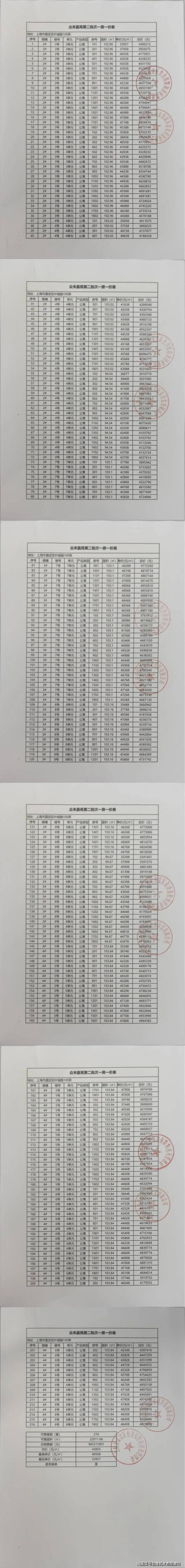 众禾嘉苑一房一价表