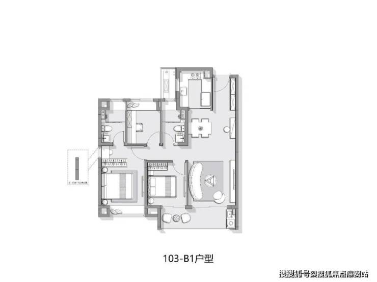 建面约103㎡3房2厅2卫样板间▼