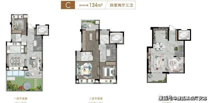 建面约105–134㎡岛居叠墅(毛坯交付),定位改善型客户
