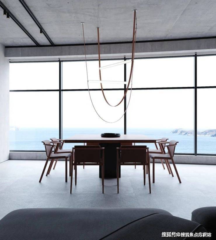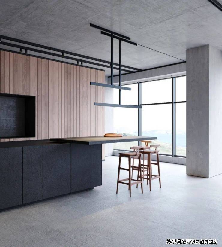 天花板以裸露的方式呈现,给室内增添了几分朴实的工业化美学。大面积的落地窗造就了室内良好的光线环境,让整体灰色系的空间看起来并不那个阴暗。