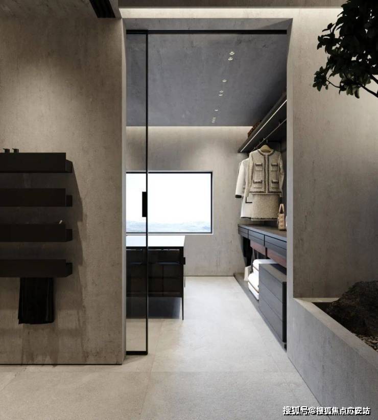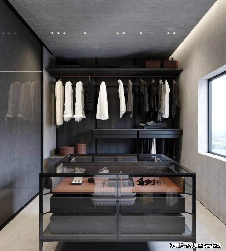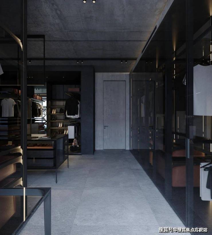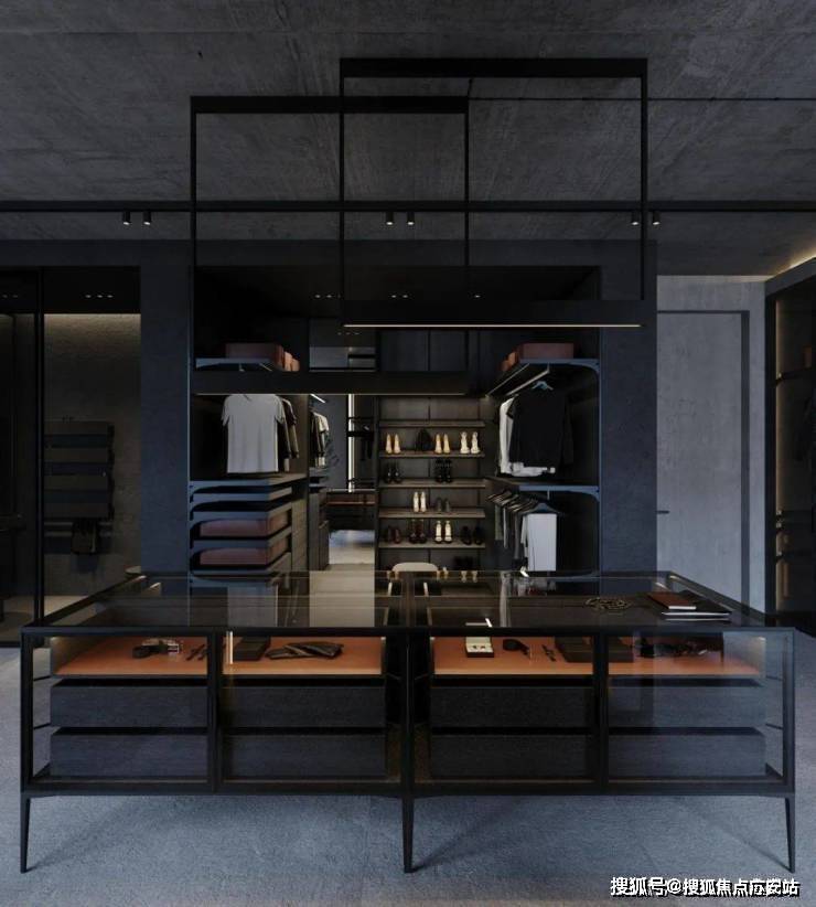 相比较于公共空间浅灰的色调,黑色系的衣帽间设计更显典雅奢华。设计师运用简单的设计线条勾勒简约的现代美学,更将业主对生活的态度描绘得淋漓尽致。