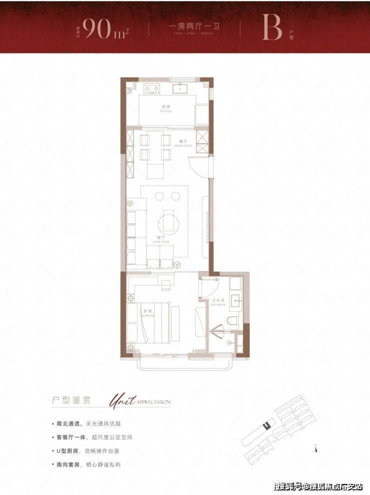 建面约90m²尊享1房户型,在100m²的基础上,进一步降低总价门槛的同时,也带来了设计上针对实用性的小巧思。