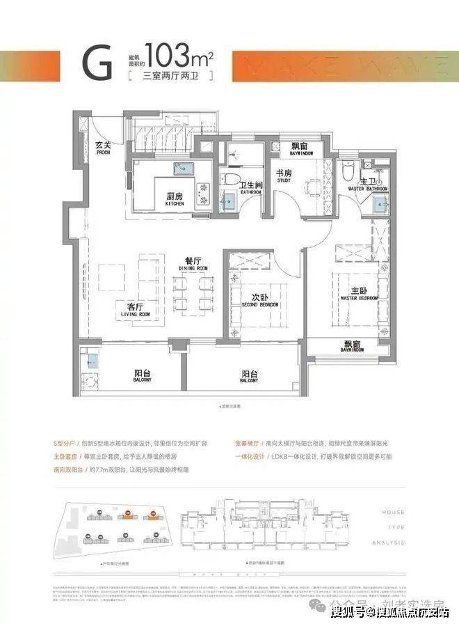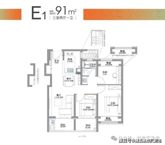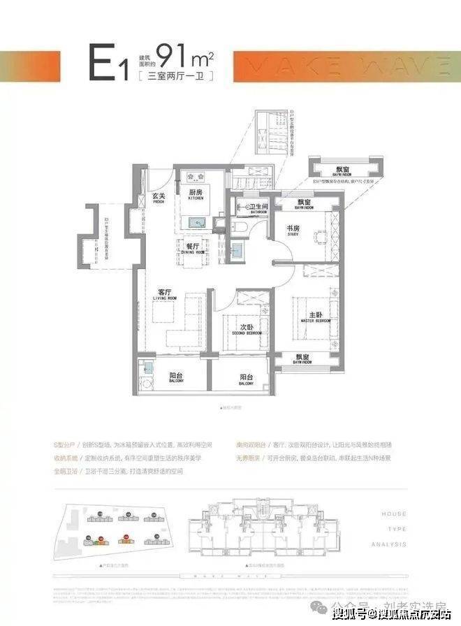 “南向双阳台+南北双飘窗”,构筑真3房户型!